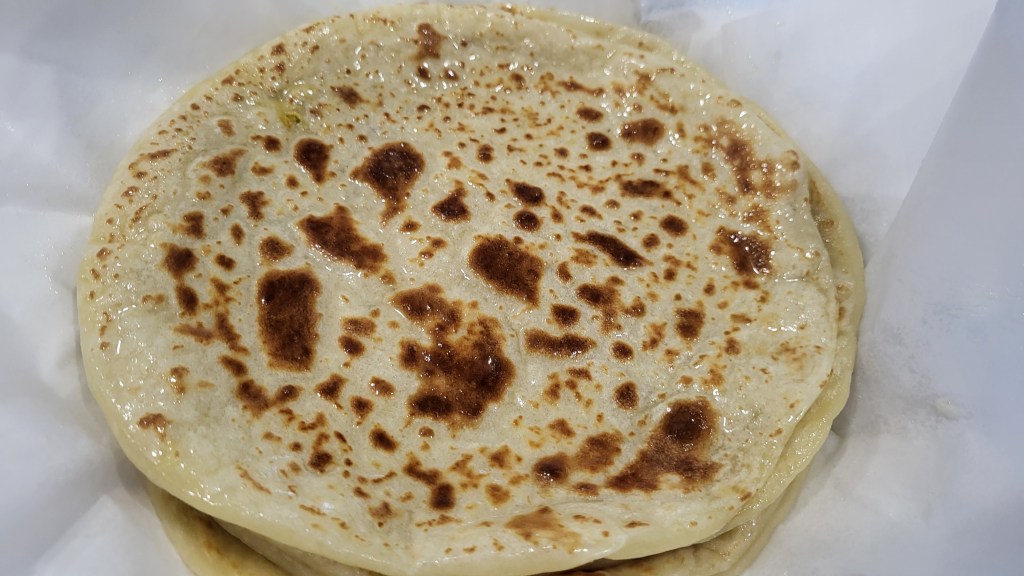 A soft, buttery roti generously filled with perfectly seasoned dhal, slow-cooked with aromatic spices for deep, comforting flavor. Lightly pan-toasted for a golden finish, each bite delivers a rich, savory, and satisfying experience that’s both hearty and indulgent.